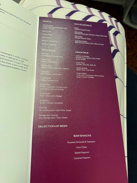 The bar selection, however, was commendable. Air India offered a solid selection of spirits, cocktails, mocktails, and beers. I appreciated the variety of non-alcoholic drinks as well, such as fresh juices and mocktails that tasted refreshing and light. It’s clear that while the food didn’t shine, the beverage options offered some redemption.