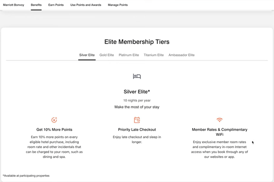 These perks are incredibly useful when booking through Marriott, especially when you’re getting bonus points and extra flexibility. The more nights you stay, the higher you climb the tier ladder with even better benefits.