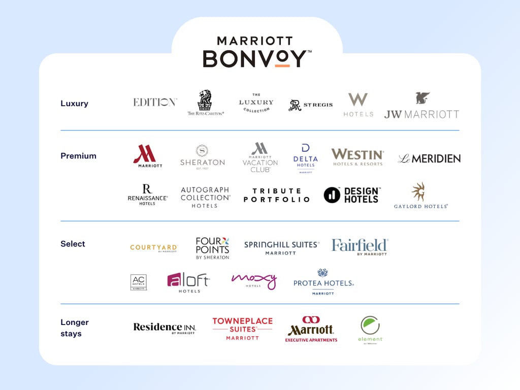You can split Marriott Bonvoy hotels into 4 types: Luxury, Premium, Select, and Hotels for Longer Stays. Here’s an example for you: