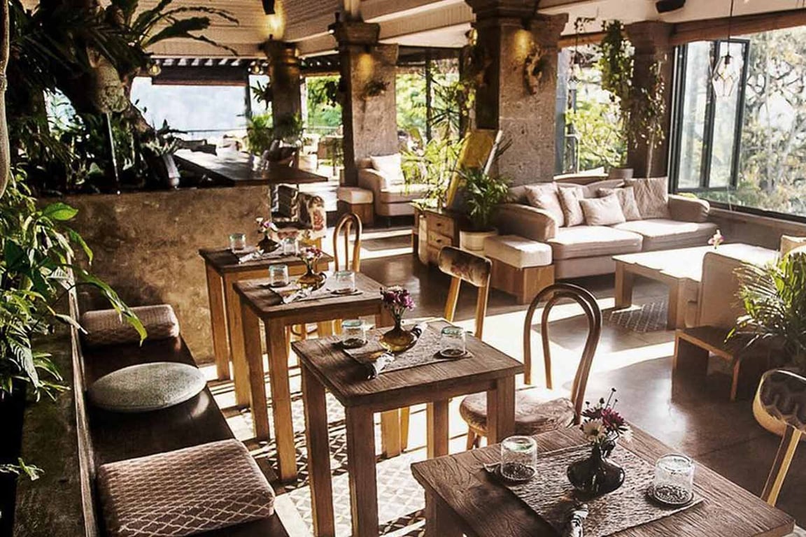 After settling in, head out for lunch at Zest Ubud, a beautiful hilltop restaurant focused on plant-based, conscious dining. The space itself is an architectural ode to wood and light, with large open walls, bamboo interiors, and views of palm trees and temple rooftops. The menu celebrates local ingredients with global inspiration—without compromising on flavour.