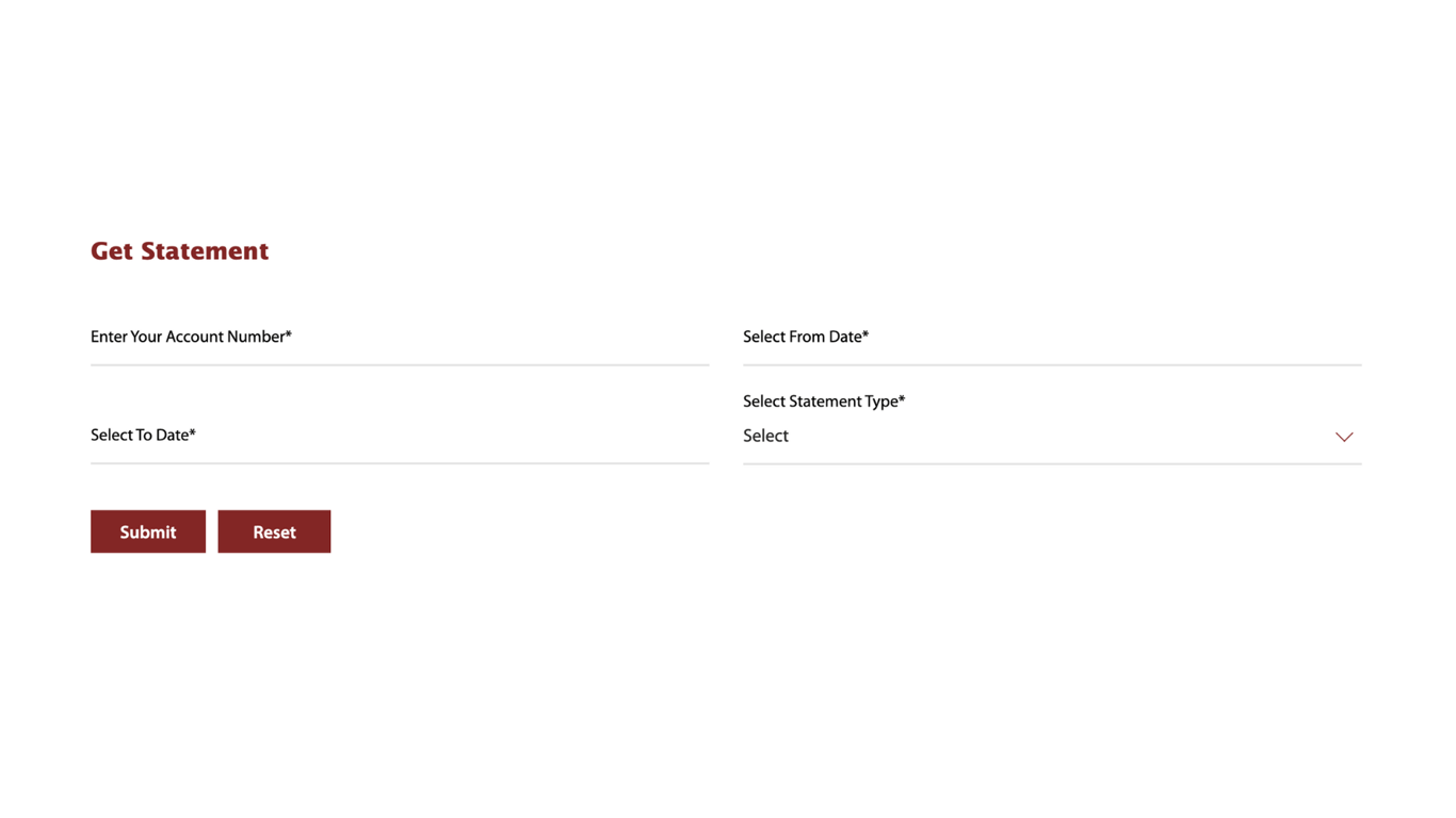 Choose "Statements" and select the type (Mini Statement, Adhoc Statement, or Monthly Statement).