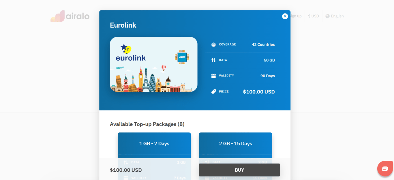 Internet speed: Depending on the local partner networks, Airalo supports fast and reliable 4G, LTE, and 5G speeds. Moreover, you also have the option to view the partnered local networks when buying the plan so that you can check the reliability of the network by yourself.