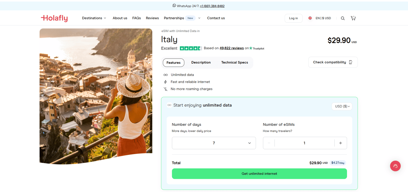 Device compatibility: Holafly eSIMs are compatible with most eSIM-enabled smartphones. You can check their website for a full list of supported devices to confirm compatibility.