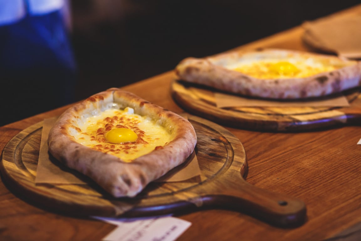 Its most famous variant is the Adjarian Khachapuri, shaped like a boat and topped with a runny egg yolk and a dollop of butter. Other notable versions include the pizza-like version filled with cheese, Imeretian Khachapuri, and Megruli Khachapuri, which is similar to the Imeretian style but with extra cheese on top.