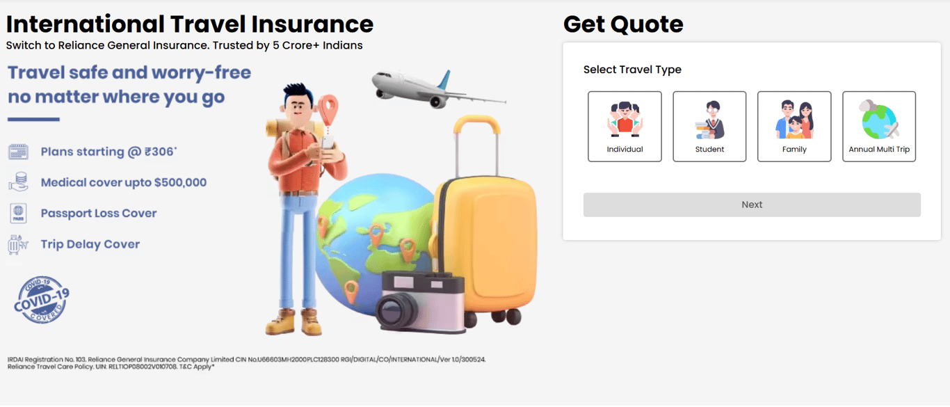 Region-Specific Plans: Tailored coverage options based on the traveller's destination, ensuring relevant and adequate protection.