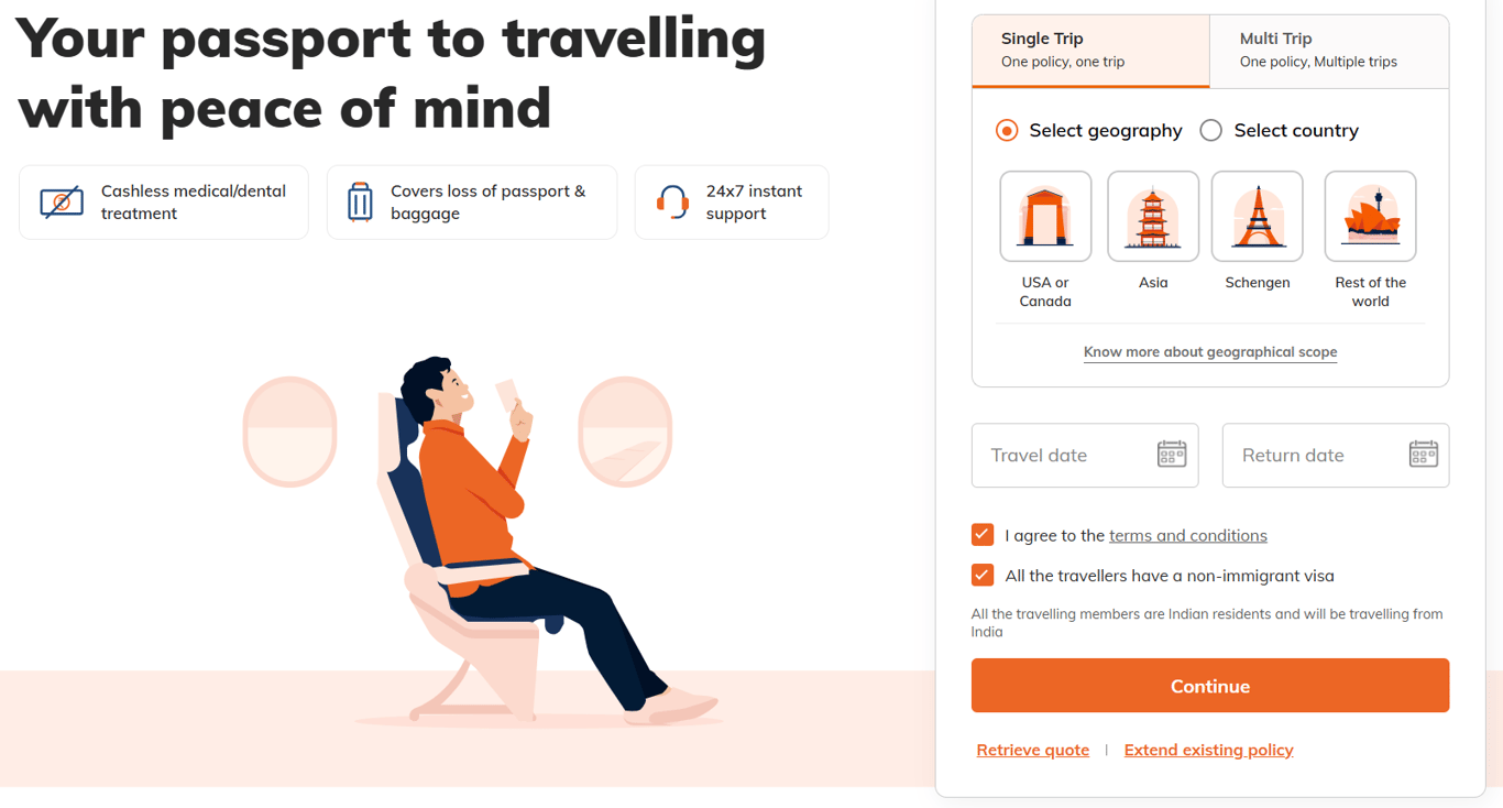 Flexible Plans: Offers various plan options, including individual, family, and multi-trip policies, catering to different traveller needs.