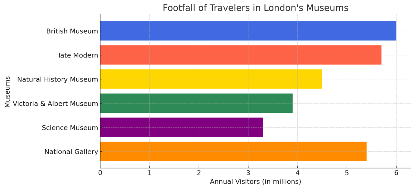 London’s museums attract millions of visitors each year, making them some of the most popular cultural landmarks in the world. The British Museum alone welcomes around six million visitors annually, drawn by its vast collection spanning centuries and continents.
