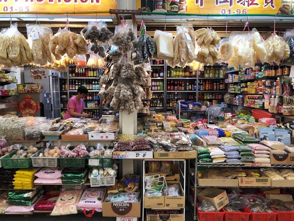 Location: Chinatown Market spans several streets, including Pagoda Street, Trengganu Street, and Sago Street, in Singapore's Chinatown district.