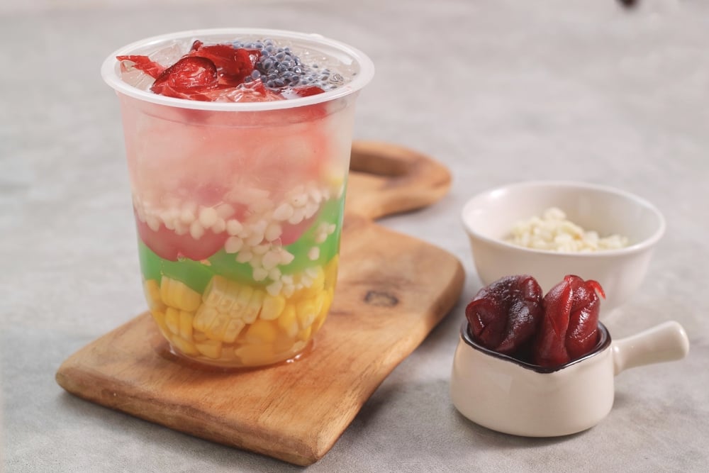 Tropical favourite, mango sago features chunks of fresh mango, sago pearls, and creamy coconut or evaporated milk. It’s light, fruity, and typically sold for SGD 3.00 to 4.50.