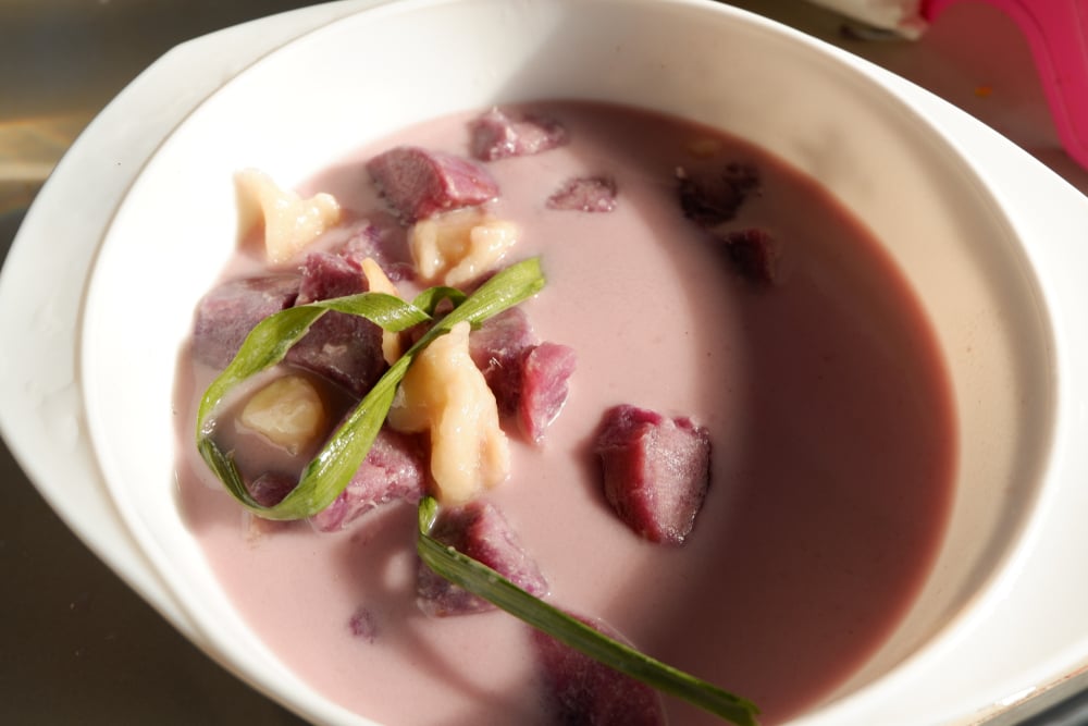 warm, velvety dessert made with mashed yams and topped with ginkgo nuts and a touch of coconut milk. It’s rich, slightly nutty, and deeply comforting, perfect after a heavy meal. You’ll usually find it at around SGD 3.50 to 5.00, depending on the stall.
