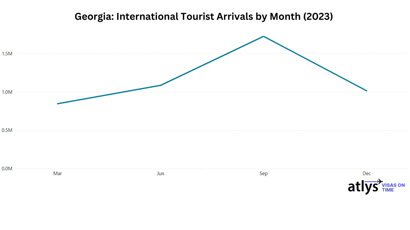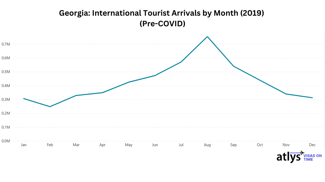 Here's a visual snapshot of monthly tourist activity in Georgia, highlighting peak inflows from June to August!