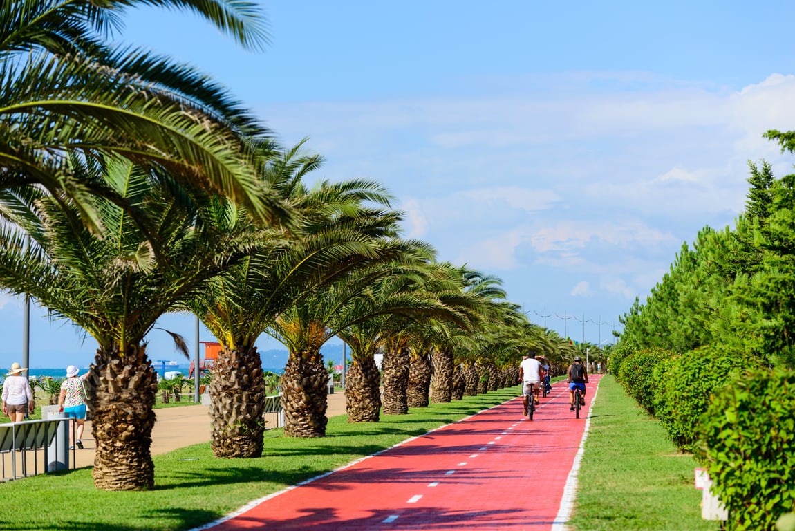 Western Georgia (Black Sea Coast): Regions like Batumi, Zugdidi, and Kutaisi experience a humid subtropical climate heavily influenced by the Black Sea. Winters are mild and rainy, while summers are hot and humid. The lush vegetation and year-round rainfall in this area make it one of the greenest parts of the country.