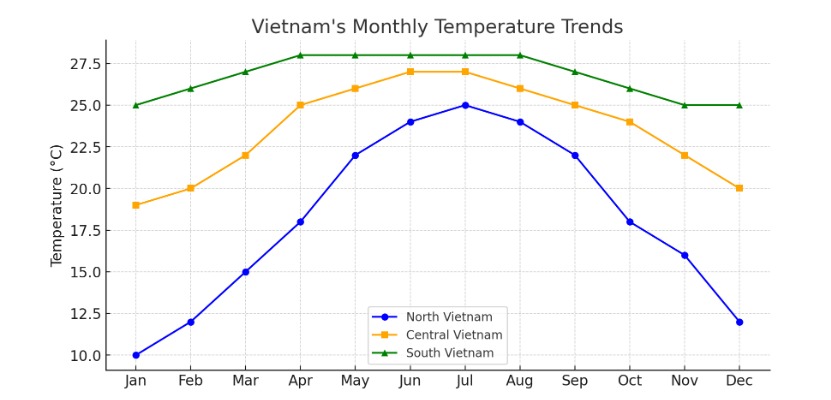 Vietnam’s climate varies greatly depending on the region, making it essential to plan your trip around the weather. Stretching over 1,600 kilometers from north to south, the country experiences distinct seasonal patterns across its three main regions: the north, central, and south.
