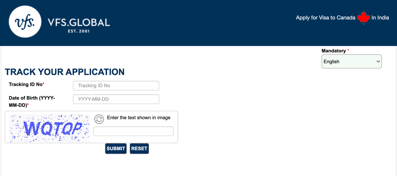 Use this method if you submitted your application through a visa application centre and received a tracking ID.