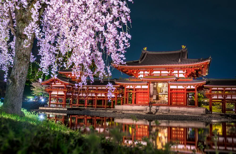 Enjoy a multi-course kaiseki dinner beneath illuminated cherry trees in a private temple courtyard in Kyoto.