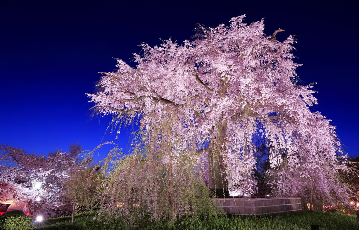 In the heart of Kyoto’s historic district, Maruyama Park is home to the Gion-shidarezakura, a massive, centuries-old weeping cherry tree that looks straight out of a fantasy novel.