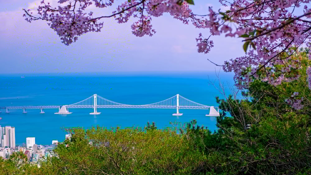 The coastal city of Busan is stunning during cherry blossom season, especially at Dalmaji Hill, Haeundae, and Oncheoncheon Stream.