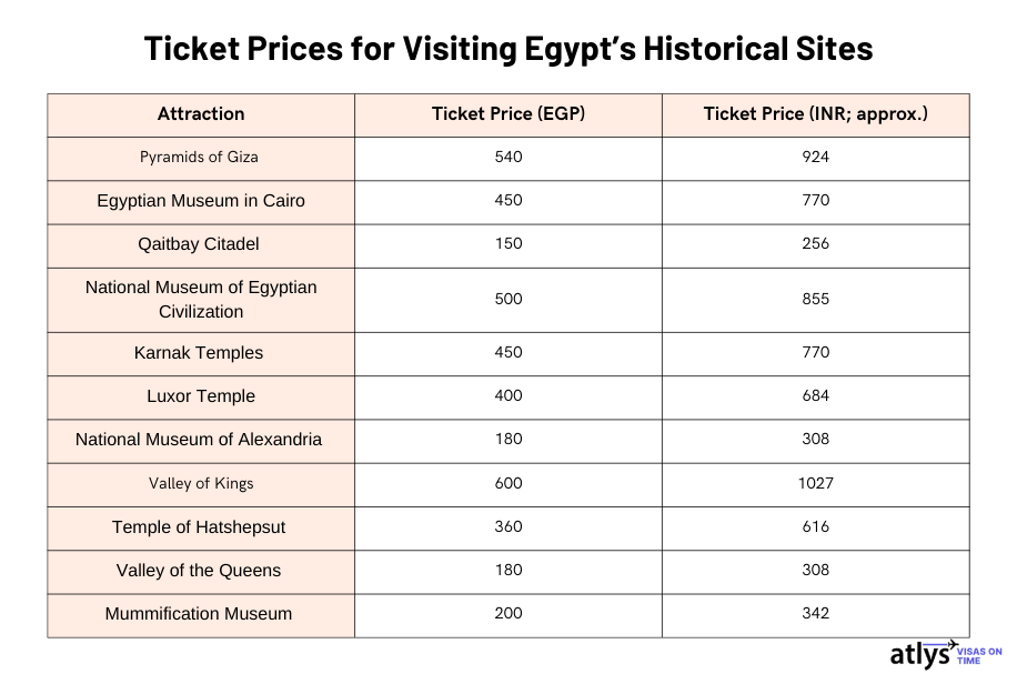 To give you an idea, here’s a breakdown of entry fees for some of Egypt’s popular attractions: