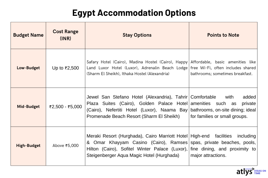 Stay in budget stays: Egypt has a variety of well-rated budget accommodations, especially in Cairo, Luxor, and Hurghada. Choosing budget hotels like Safary Hotel in Cairo and Ithaka Hostel in Alexandria can help you save significantly.