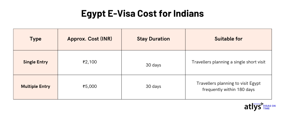 The first step in planning your trip to Egypt is to factor in visa expenses. Indian passport holders need a valid visa to enter Egypt, which can be obtained either online or through the Egyptian embassy. Applying online for an Egypt e-visa is often convenient, as it requires minimal documents, involves faster processing time, and allows you to get your visa from the comfort of your home!