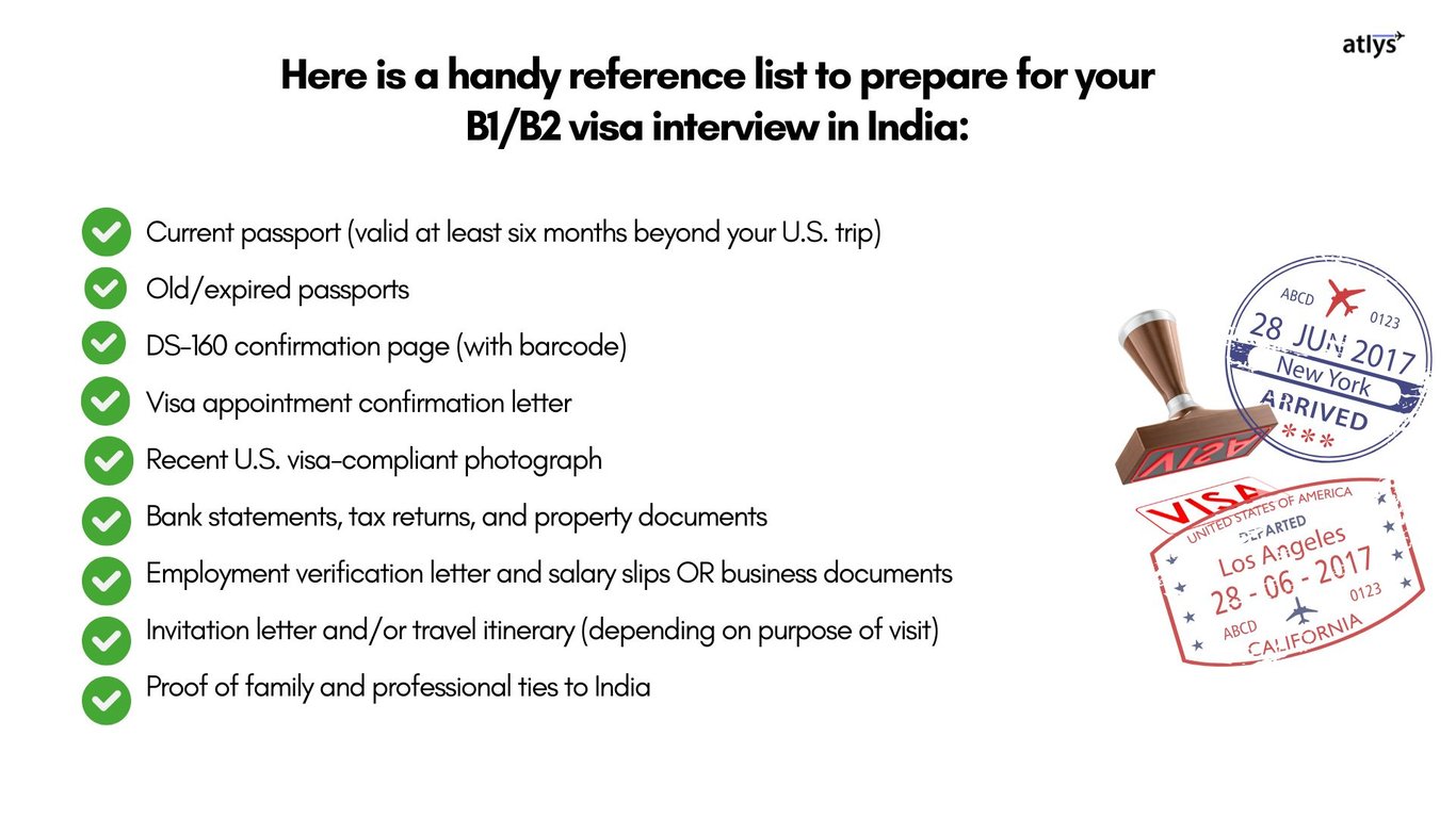 Here is a handy reference list to prepare for your US B1/B2 visa interview in India: