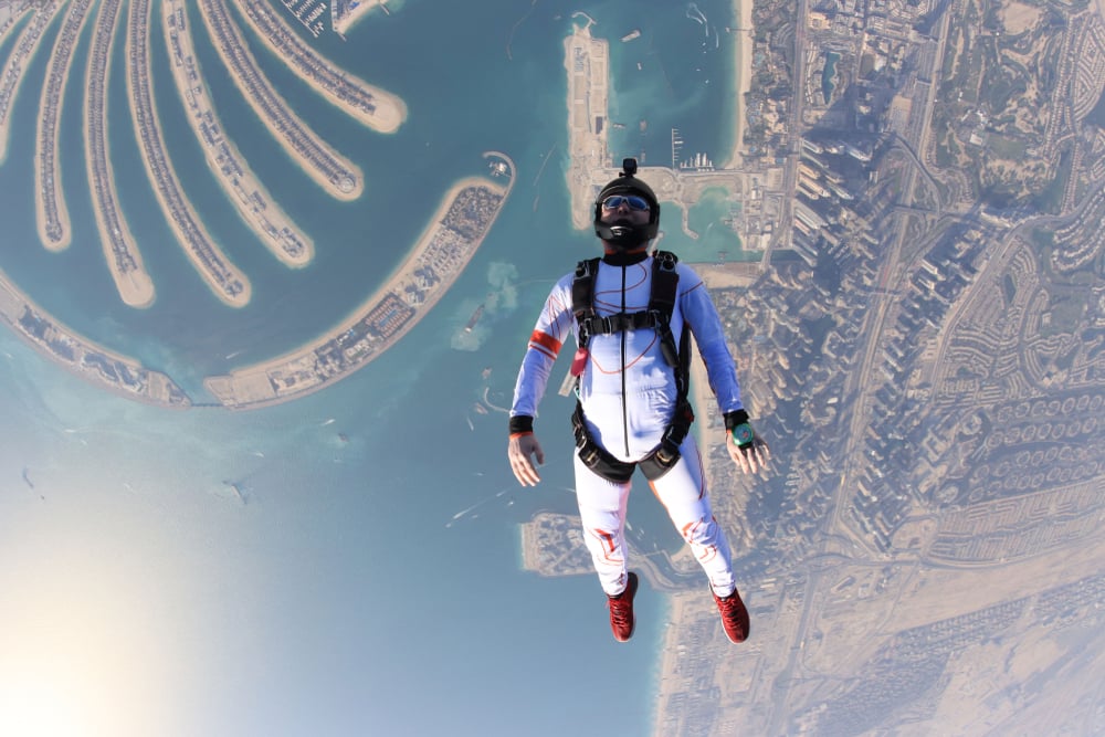 Costs: Skydiving starts at AED 2,299 ($626 USD), while water sports range from AED 150–600 ($41–$163 USD).