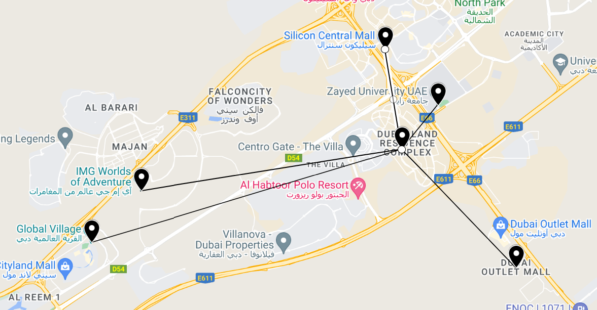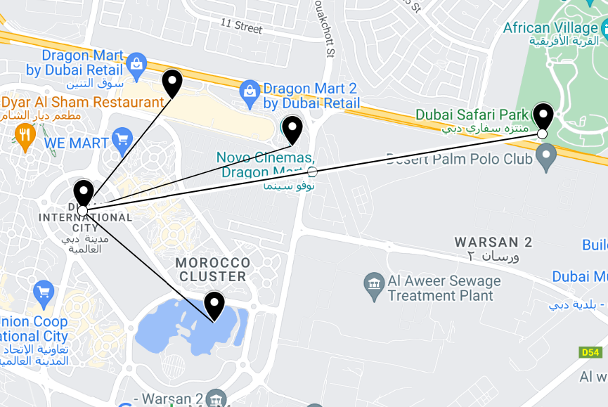 Dragon Mart: A massive shopping hub featuring Chinese products, electronics, furniture, and more.