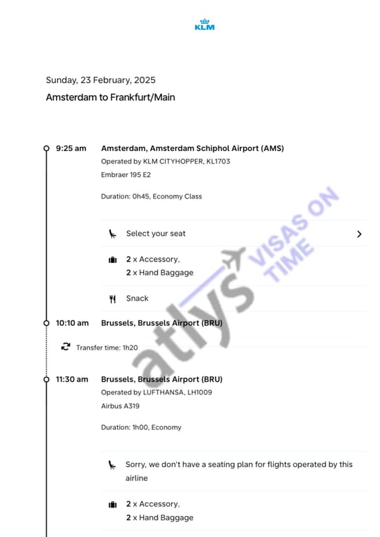 Here are a few samples for your Schengen flight itinerary reference: