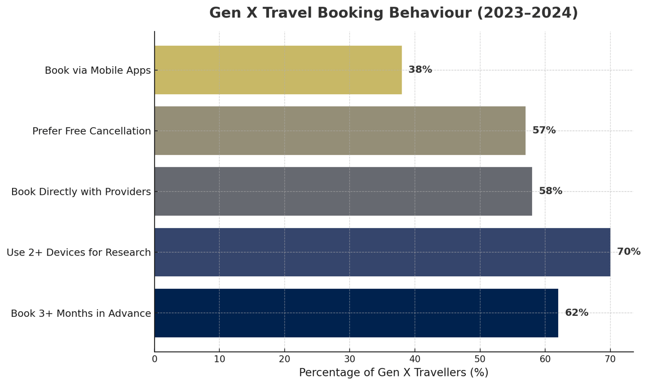 About 58% of Gen X travellers prefer mid-range to upscale hotels, seeking a balance of comfort and authenticity.