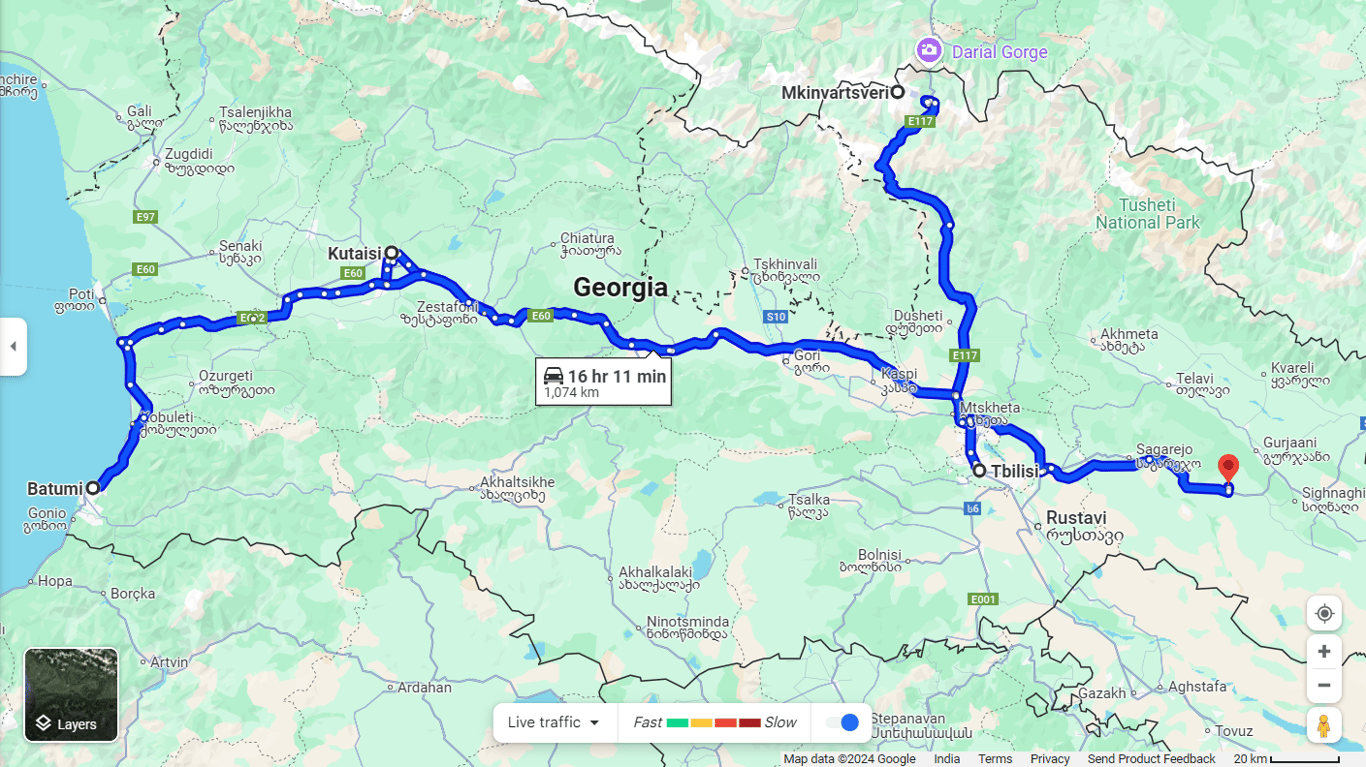 Here's your Georgia road trip at a glance [Tbilisi - Kazbegi - Kutaisi - Batumi - Kakheti - Tbilsi]: