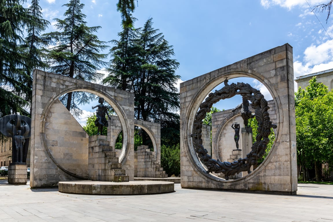 After settling into your accommodation in Kutaisi, head out to explore some of its hotspots. Park the car at the public parking space and walk in the central square to see the Colchis Fountain (a central landmark adorned with golden statues inspired by ancient Georgian mythology) and the Soviet Sculpture Complex, showcasing monumental art from the Soviet era.