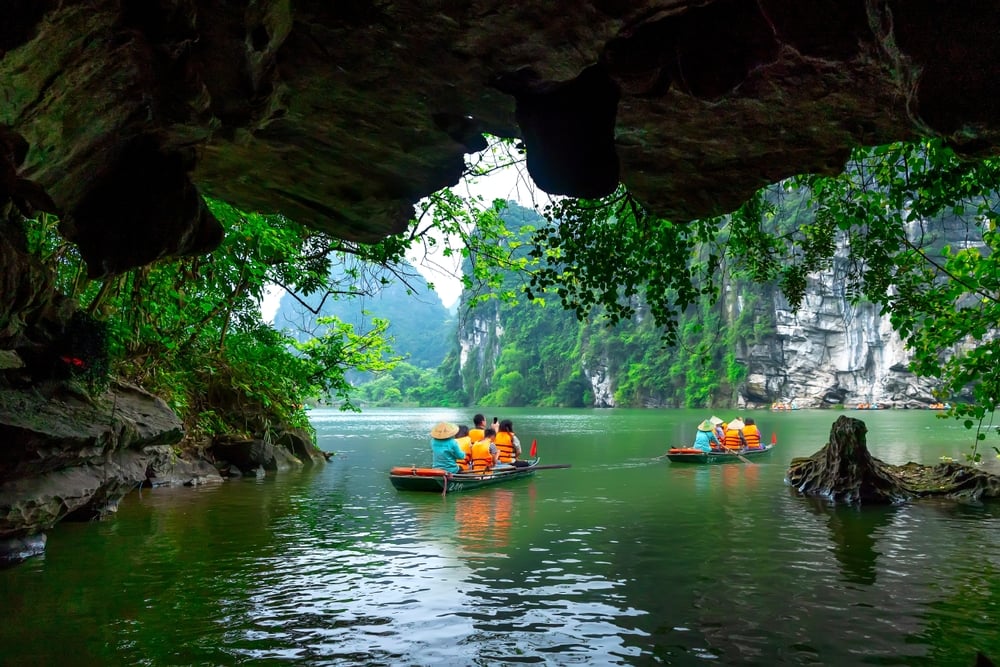 Boat ride through Trang An or Tam Coc – Glide through limestone caves and rice paddies on a traditional sampan boat.