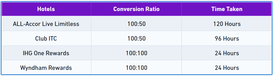 And here's a quick summary of HDFC Infinia's point transfer capacities for hotels: