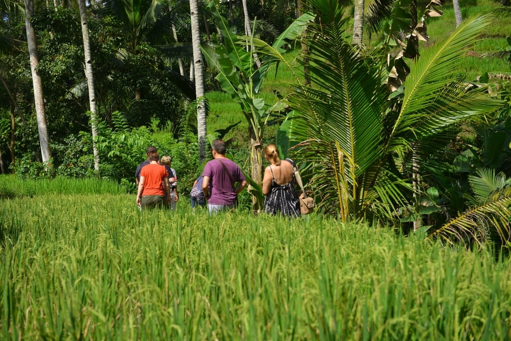 The 2.4 km round-trip hike is relatively easy and ideal for beginners or anyone craving a nature walk that ends with a swim under a tropical waterfall. Along the trail, you’ll pass vibrant rice fields, small temples, charming village homes, and friendly locals who often greet visitors with warm smiles. The route winds through dense greenery and fruit orchards, making the journey as rewarding as the destination.