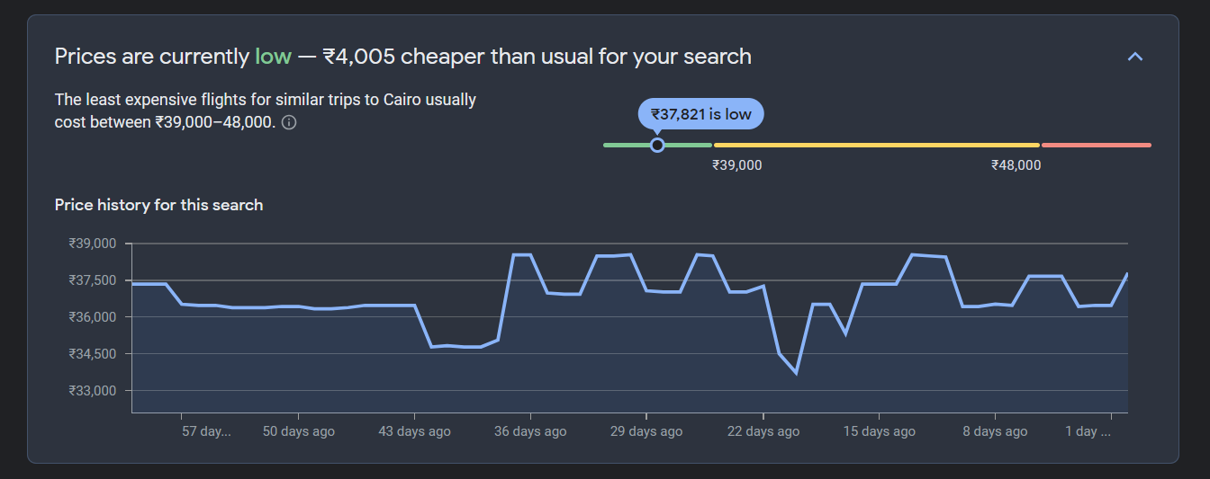 Source: Google Flights [Avg. round-trip price for a flight from DEL to CAI]