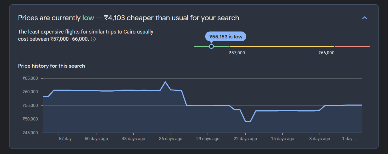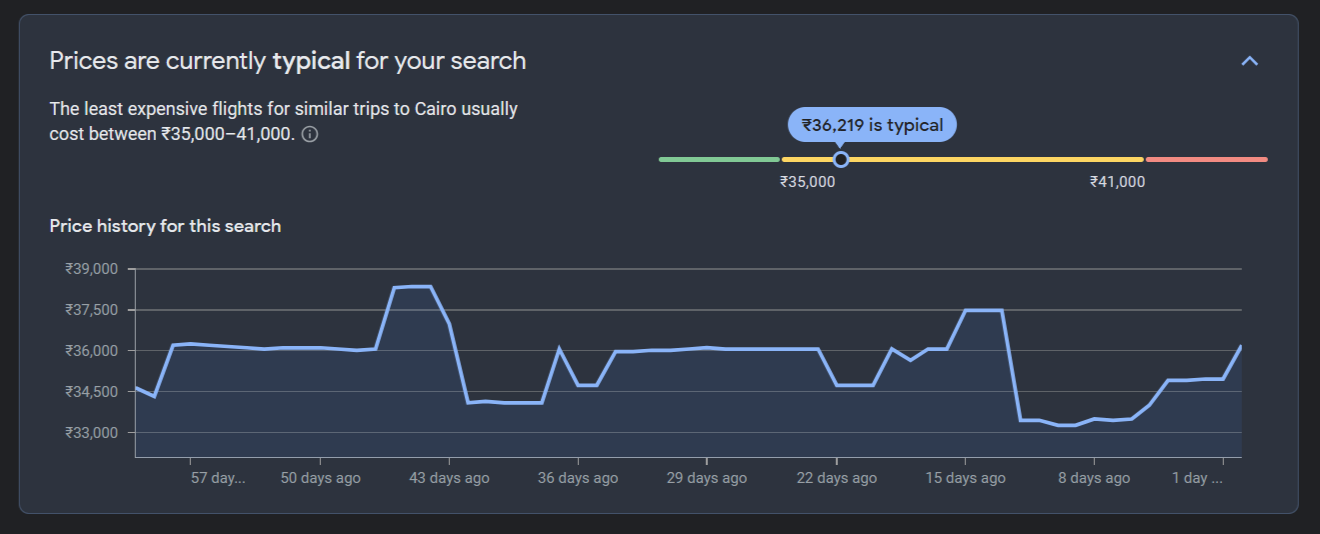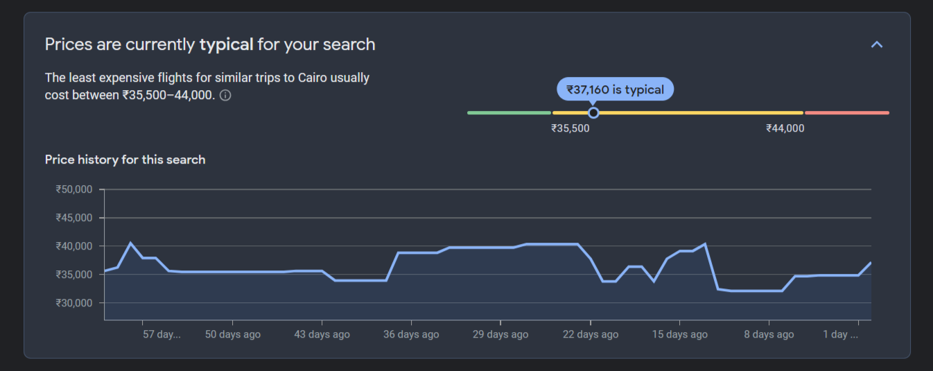 Source: Google Flights [Avg. round-trip price for a flight from BOM to CAI]