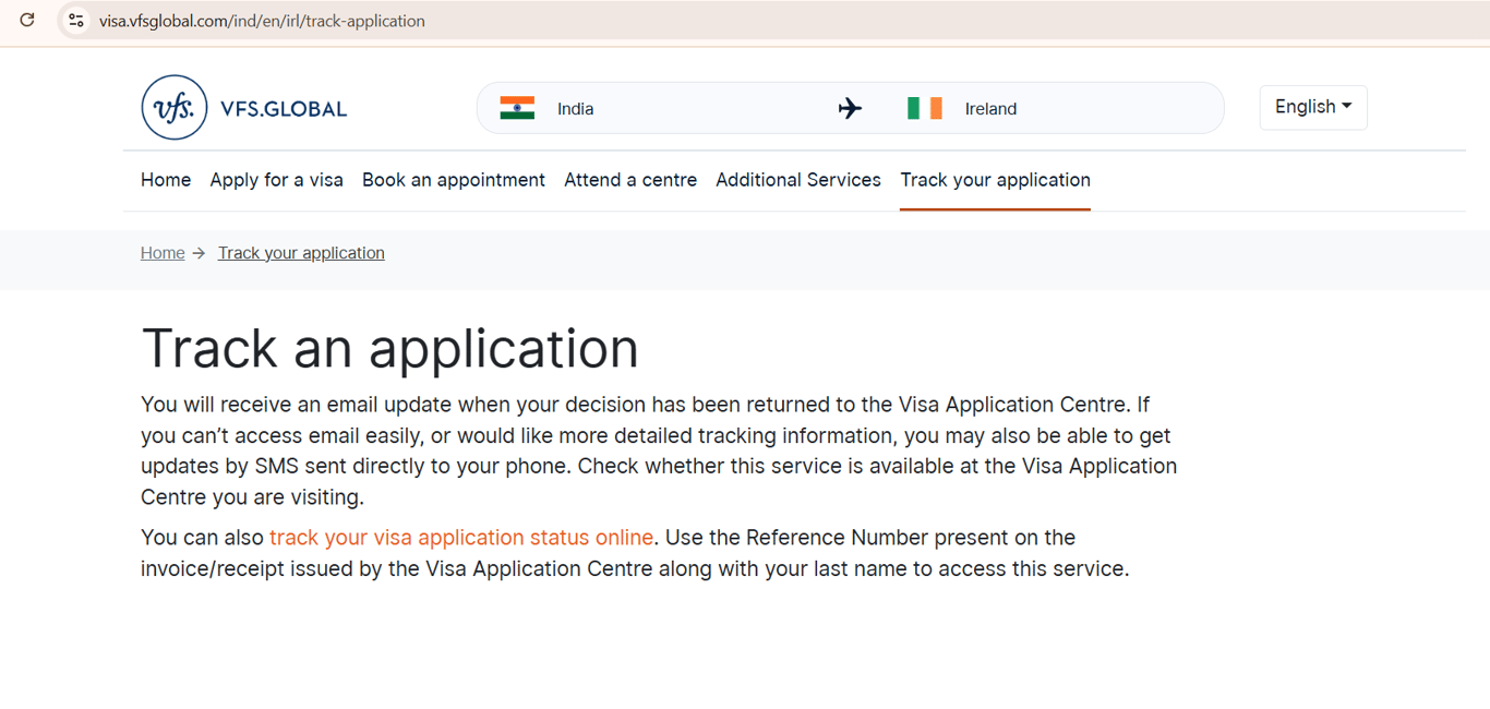 You can track your Ireland visa application status online through the VFS Global website, which manages visa applications for Ireland in India. Enter your application reference number and date of birth to get real-time updates.