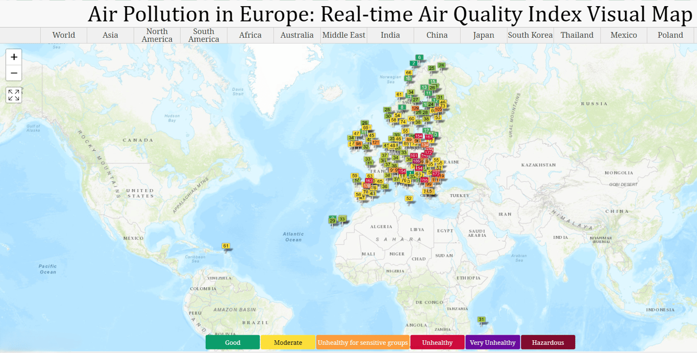Air pollution remains a major health concern in some parts of Europe, particularly in Eastern and Southeastern nations.