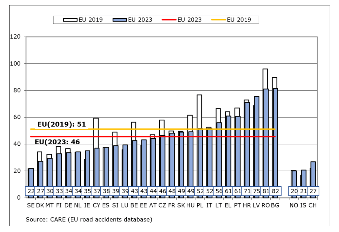 Europe has some of the safest roads in the world, but road accidents remain the leading cause of transport-related fatalities. In 2023, 20,400 people lost their lives in road crashes across the EU, a 1% decrease from the previous year. While road safety has improved compared to 2019, the EU still faces challenges in reducing traffic-related deaths to meet its Vision Zero goal.