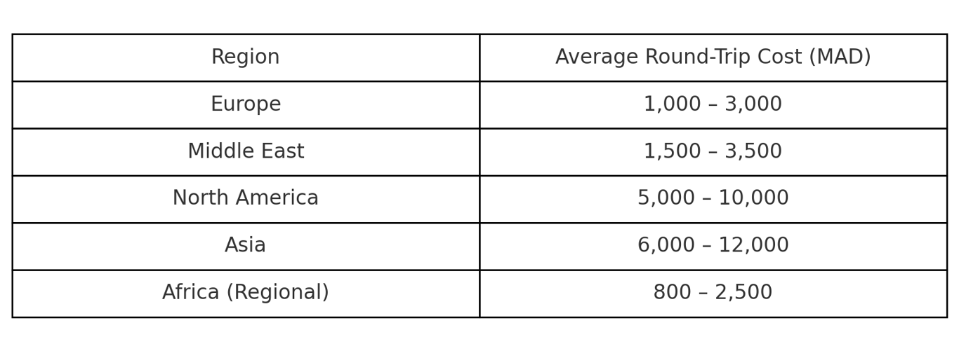 Here’s a rough estimate for round-trip flight costs based on global regions: