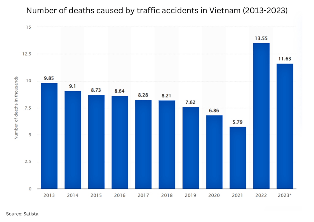 Despite progress, road safety remains a concern. In 2023, traffic accidents led to approximately 11,628 deaths, a decrease from the previous year’s 13,000 fatalities but still a significant number. The high rate of road accidents is attributed to various factors, including overcrowded roads, reckless driving, and unfamiliarity with traffic norms by foreigners renting motorbikes. To combat this problem, the government has responded by increasing penalties for traffic violations and making safety training mandatory for motorbike rentals, contributing to a slight reduction in accidents.