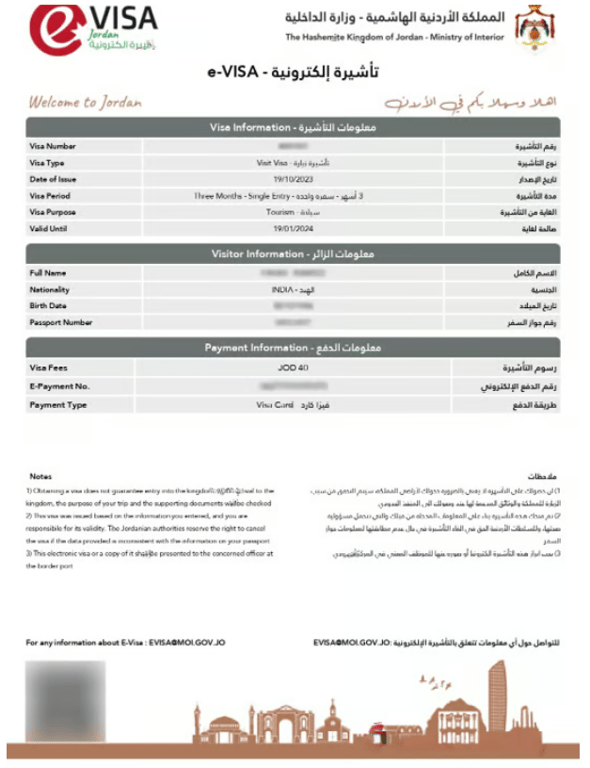 This is what your Jordon e-visa will look like: