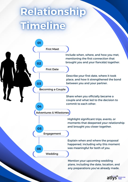 This question allows the officer to gauge the depth of your relationship and whether it's had enough time to grow into something real and lasting. If you've only been together for a short period, especially less than a year, it might raise concerns for the officer, as they could see the relationship as rushed or not fully developed.