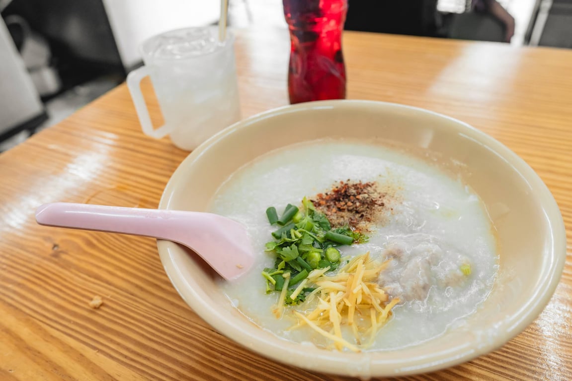 Famous for its smoky, charcoal-infused rice porridge (jok), this stall serves comforting bowls topped with minced pork, century egg, and ginger. It’s open late, making it a favourite post-nightlife meal.