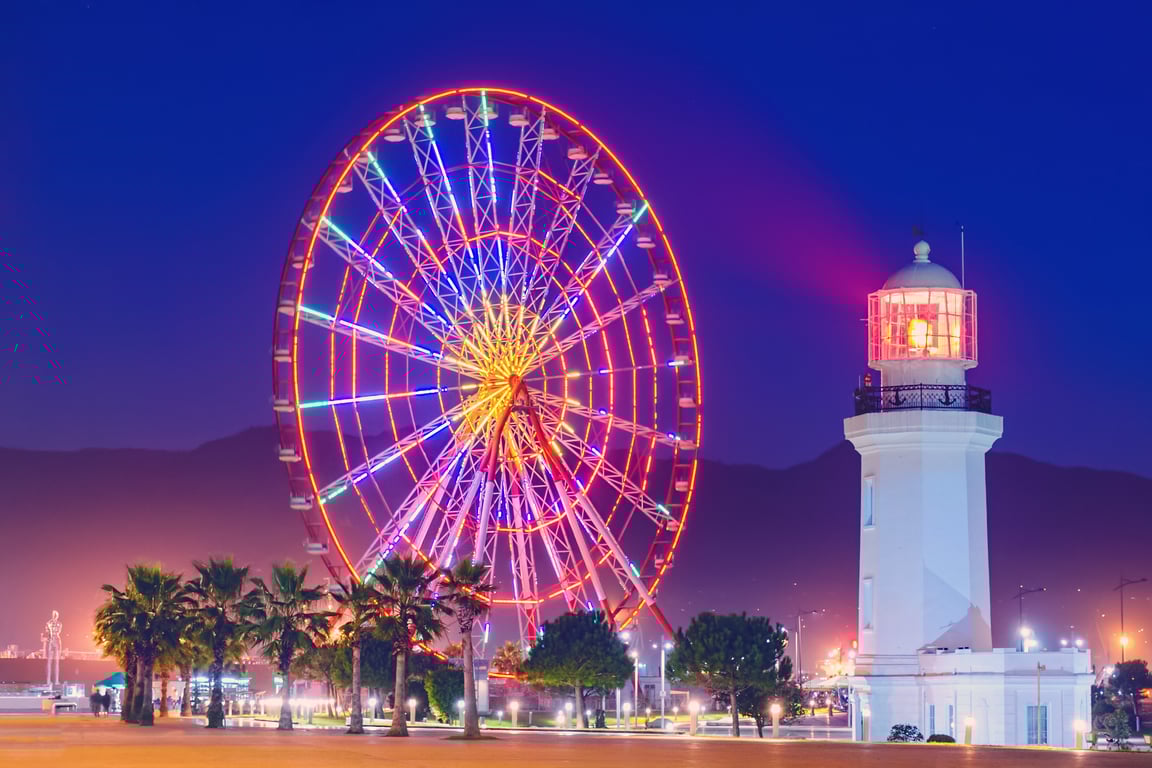 360-Degree Views: Whether it’s the sparkling Black Sea, the bustling Batumi Boulevard, or the distant green mountains, the Ferris wheel offers all the eye candy you could ask for.