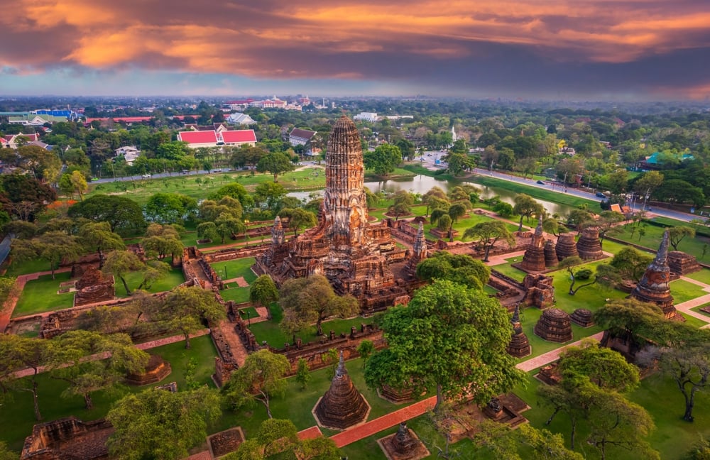 Things to do: Explore Wat Mahathat (tree-root Buddha head), Wat Chaiwatthanaram, and Wat Phra Si Sanphet. Take a sunset boat cruise and try boat noodles and roti sai mai.