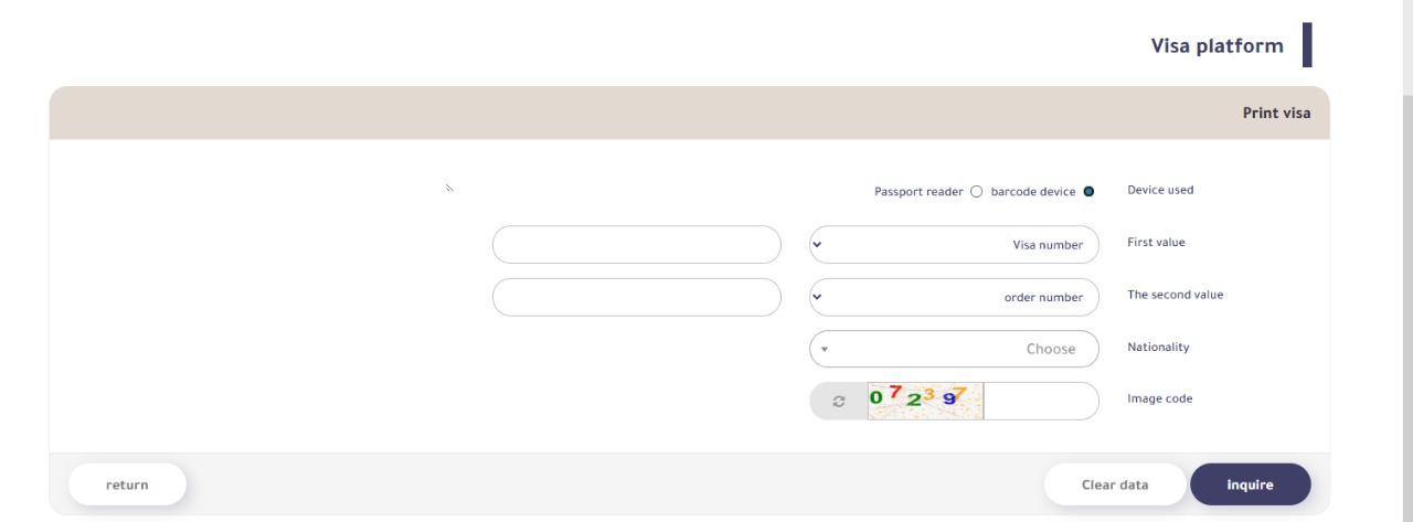 Step 3: Then choose the 'Print eVisa' option. Enter your visa number, order number and choose your nationality.