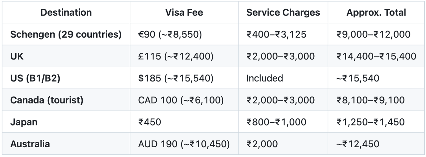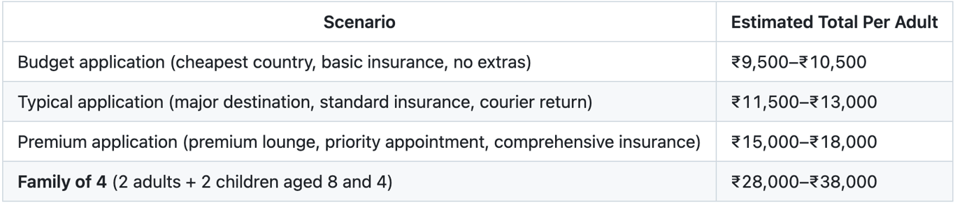 For context, here's how the Schengen visa cost compares to other destinations Indians frequently apply to: