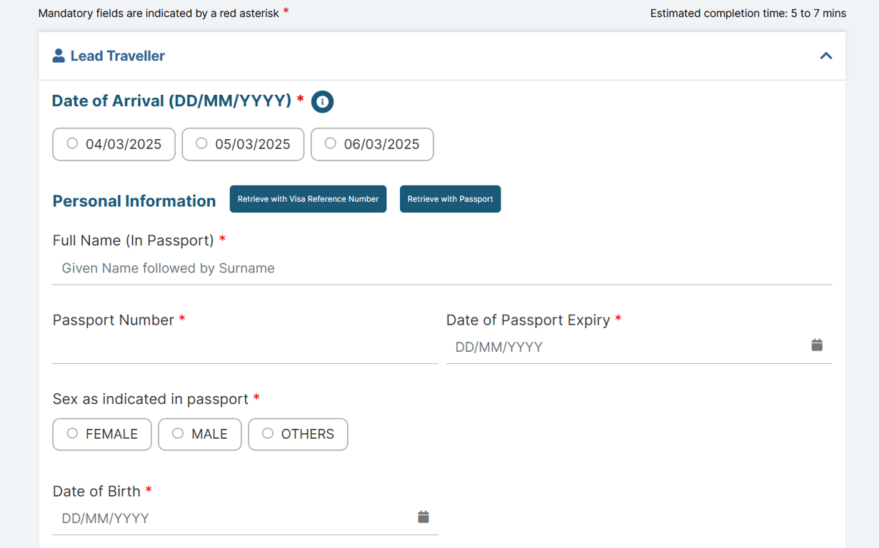 Submission Timeline: Submit within 3 days before arrival in Singapore.