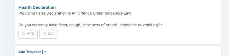 Health Declaration: Required for all travelers, including Singapore residents.